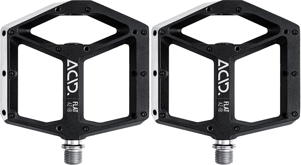 Im Bikepark kennst du jeden Anlieger, jeden Sprung und jede Wurzel. Adrenalin pur! Auf deine ACID FLAT A2-IB Pedale kannst du dich dabei voll verlassen. Mit ihren haltbaren Pins und der großen Standfläche fühlst du dich auch im gröbsten Wurzelteppich sicher mit dem Bike verbunden und kannst dich doch sofort davon lösen, wenn der Trick mal nicht so klappt wie geplant.