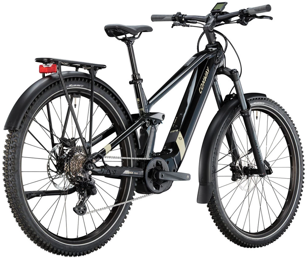 Das Conway Xyron SUV 2.9 ist das wohl bequemste und dennoch alltagstauglichste E-MTB. Ausgestattet mit Licht, Gepäckträger und Schutzblechen vereint es den Komfort eines E-Fullys mit der Praktikabilität eines urbanen Bikes. Es überzeugt mit einem leistungsstarken Bosch Performance CX Gen 4 Motor. Der 625 Wh große Akku versorgt dich zuverlässig mit dem nötigen Strom, damit du noch länger die Zeit auf deinem Bike genießen kannst.