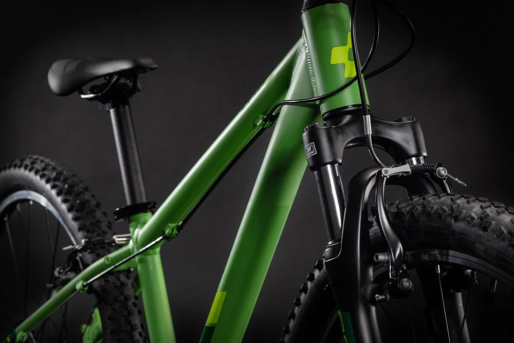 Der Rahmen des Acid 240 besteht aus denselben hitzebehandelten 6061er Aluminiumrohrsätzen wie der unserer Erwachsenen Mountainbikes und ist demnach genauso robust und stabil. Wir haben seine Proportionen und das Gewicht aber auf die Anforderungen von Kindern abgestimmt. Zudem können Schutzbleche montiert werden – und ein Flaschenhalter, damit die Kids unterwegs immer ausreichend mit Flüssigkeit versorgt sind. Dank dem guten, auf hohen Fahrspaß ausgelegten Handling tanken die Youngsters jede Menge Selbstvertrauen. Und weil sich Unfälle nicht immer vermeiden lassen, haben wir uns für ein einfach austauschbares Schaltauge entschieden, was aufwendige Reparaturen nach einem Sturz oder Aufprall erspart.
