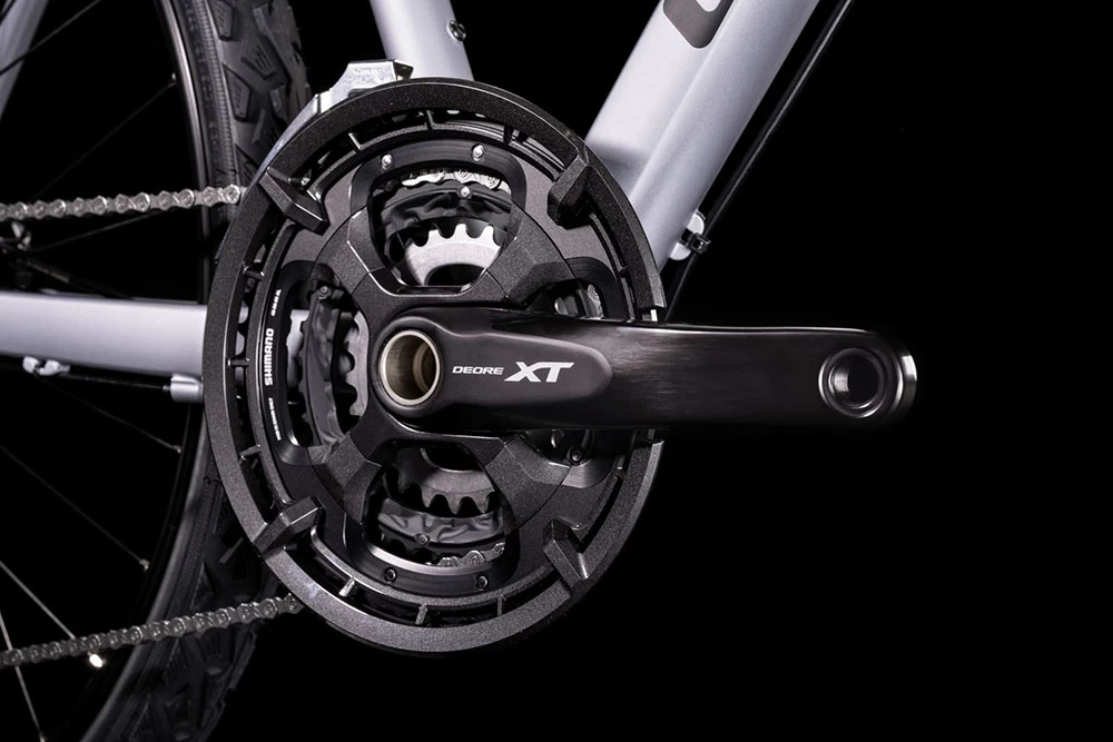 Dazu wechselt die zuverlässige XT und Deore 3×10 Schaltung von Shimano leicht und geschmeidig von Gang zu Gang – so wird jede Route und jeder Anstieg zum Kinderspiel. Maximale Bremskraft ist das Spezialgebiet der einfach zu bedienenden hydraulischen Shimano Scheibenbremsen, die bei jedem Wetter kräftig zupacken und das Bike kontrolliert zum Stehen bringen. Jetzt braucht’s nur noch die perfekte nächste Route und los!