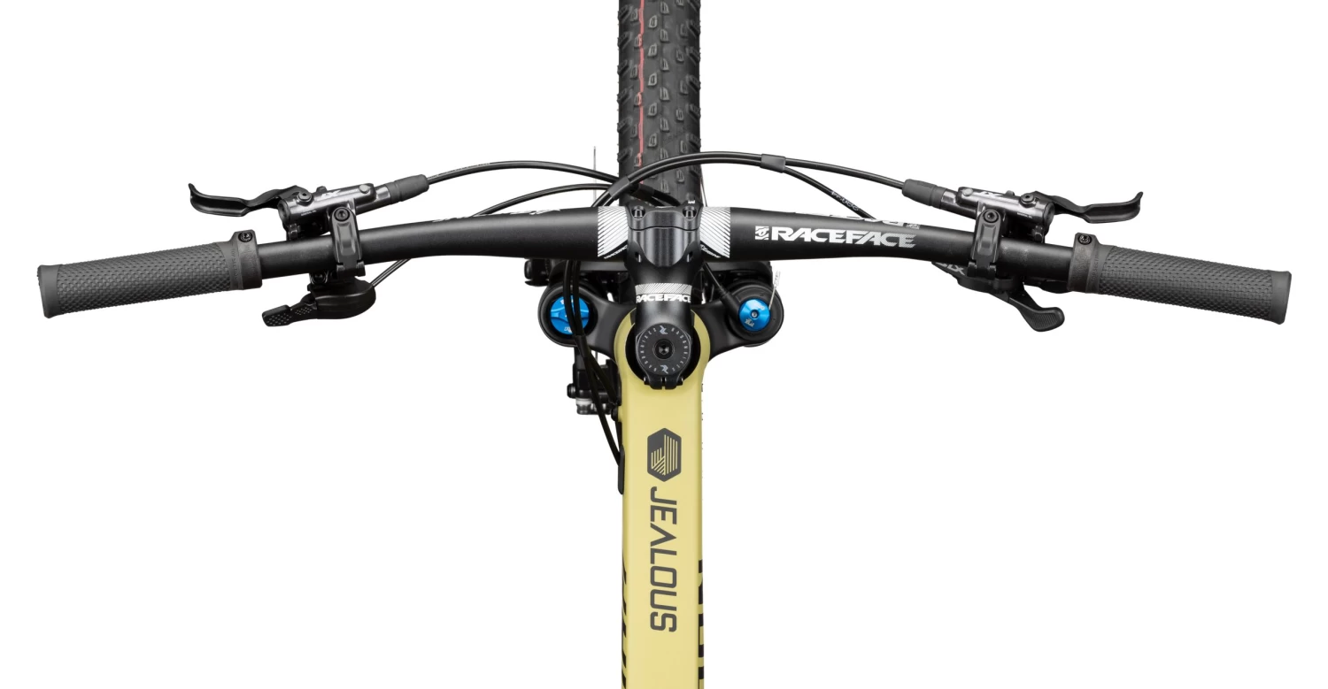 Wer das Paket aufschnürt, stößt zunächst auf den superben Alurahmen mit seinen zarten ca. 1.680 Gramm, der trotz geringen Gewichts alle technisch erforderlichen und sinnvollen Standards mitbringt. So sind nebem dem Verzicht auf eine Umwerferaufnahme für die cleane Optik die Schaltzüge innen verlegt, die Radachsen kommen im Boost Standard für eine höhere Laufradsteifigkeit und der Rahmen ist für die Verlegung einer Dropper Post vorbereitet. An der Front arbeitet eine FOX 32 Float Performance Step Cast Gabel mit ihren 100mm Federweg und ebnet mit superbem Federungsverhalten auch Wurzelteppiche und Steinfelder ein. Du willst den fiesesten Berg der Hausrunde hochsprinten? Kein Problem, Du kannst die Gabel ganz bequem vom Lenker aus per Remote sperren. Über jeden Zweifel erhaben ist auch die Shimano XT Gruppe, sie steht für perfekte Schaltvorgänge und solide Haltbarkeit. Im Fall des JEALOUS AL 10.0 gesellt sich auch noch die starke und zuverlässige Shimano XT Bremse dazu, die Dir viel Vertrauen geben wird und Dich immer dosiert verzögern lässt. Das Race Face Cockpit unterstützt die Sicherheit auf dem Trail und platziert Dich angenehm im Bike, wo Du dank des bequemen Selle Italia Model X Superflow Sattels auch einige Stunden verbringen kannst. Leichte und dennoch stabile Mavix Crossmax Laufräder runden das Gesamtpaket ab, für geschmeidiges Abrollen bei gutem Grip im Gelände montieren wir Schwalbe’s Top-Reifenkombination Racing Ray und Racing Ralph in der schicken transparent skin Variante. JEALOUS AL 10.0 – solid as a rock!