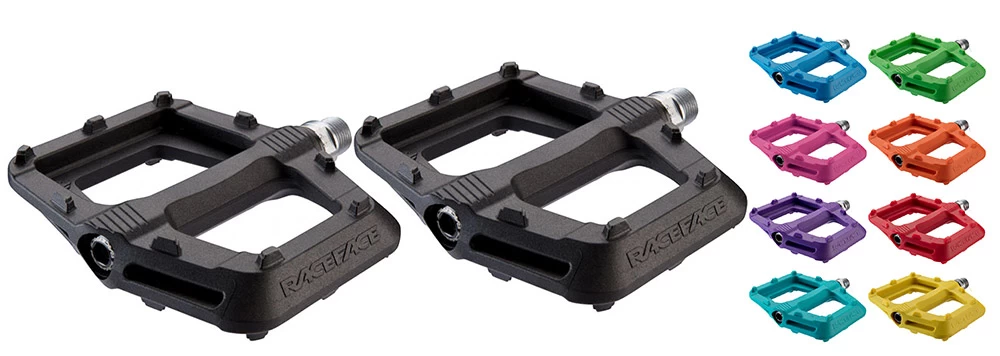 Das Race Face Ride-Pedal verfügt über eine schlanke Nylon-Composite-Plattform und bietet durch das konkave und leichte Design eine perfekte Performance. Geformte Pins geben den nötigen Halt, ohne dass deine Schuhe oder Schienbeine Schaden nehmen.