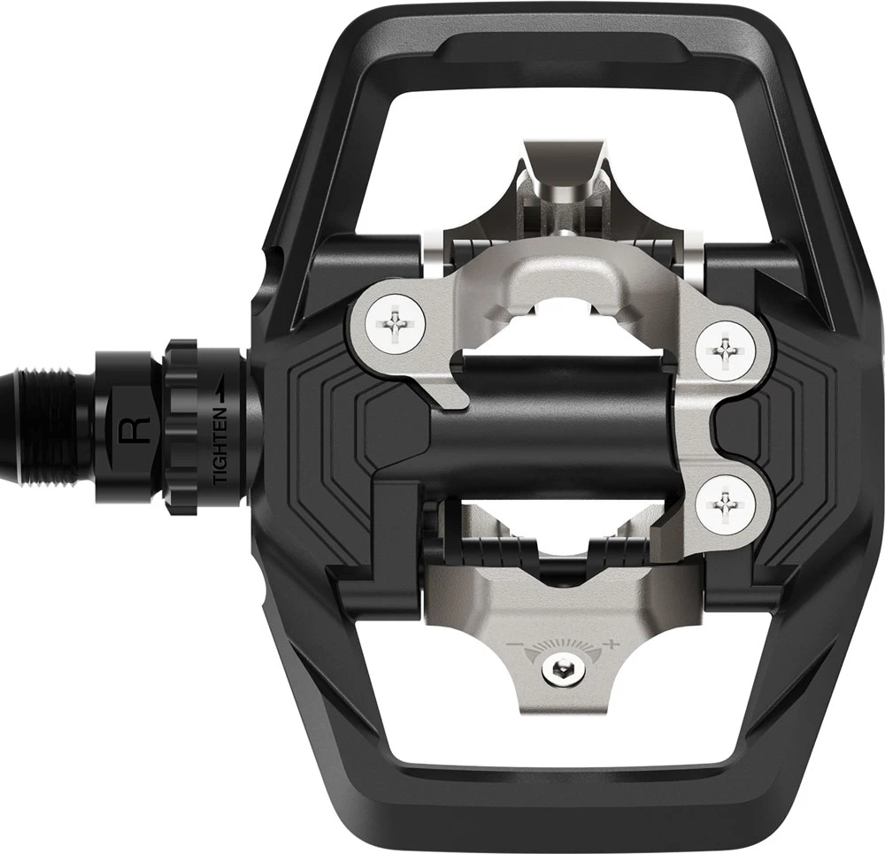 - Breite, zweiseitige Aufstandsfläche für höhere Pedal-Schuh-Stabilität und Kraftübertragung